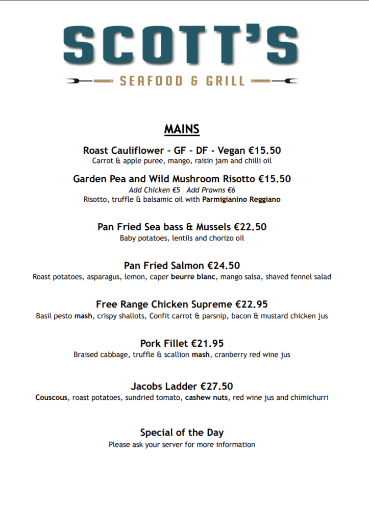 Enjoy a taste of Scott’s at a great value with our Early Bird Menu. Featuring a curated selection of our most popular starters and mains, this menu is perfect for those looking to enjoy a delightful meal before the evening rush.